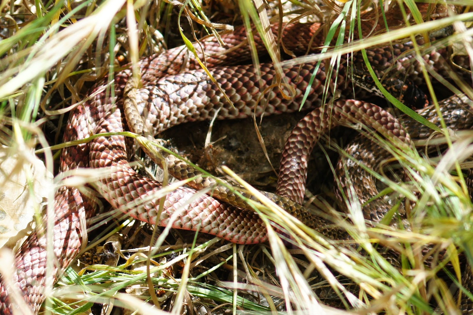 In the riparian area, I stumbled across these male and female Summer Tanagers. The male was enjoying quite the snack.