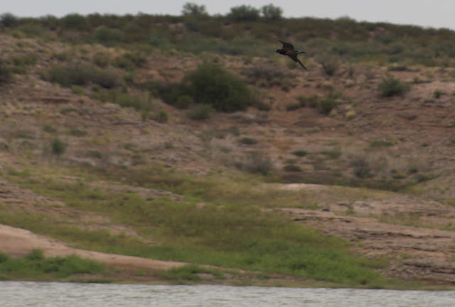 After Tufa, I made a quick stop at the San Carlos Sewage Ponds to try for the Pyrrhuloxia. No luck on that. I thought, "Oh no, 0 for 2 on targets. That leaves me with one target left, the Parasitic Jaeger. If I can go 1 for 3 with it being the bird I land, that completes the trip". About an hour later while at San Carlos Lake, I was scanning the same stretch of water repeatedly where I first caught sight of the Jaeger the previous week. I wasn't having luck there, and I decided to go to another viewpoint that was about a half mile west and one that would put me closer the the water. As I got to the spot, I had a great view of the lake, and with my naked eye, I saw that wanted shape close to the shore. Right when I got there and before I could even get out of my truck..
